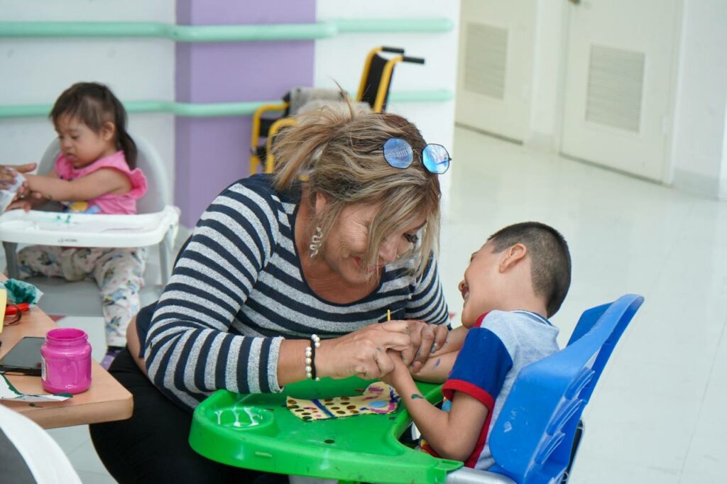 Este servicio incluye cuidado, atención a la salud y recreación, además de terapias de rehabilitación, en un espacio seguro y adecuado mientras madres y padres de familia realizan sus actividades laborales.