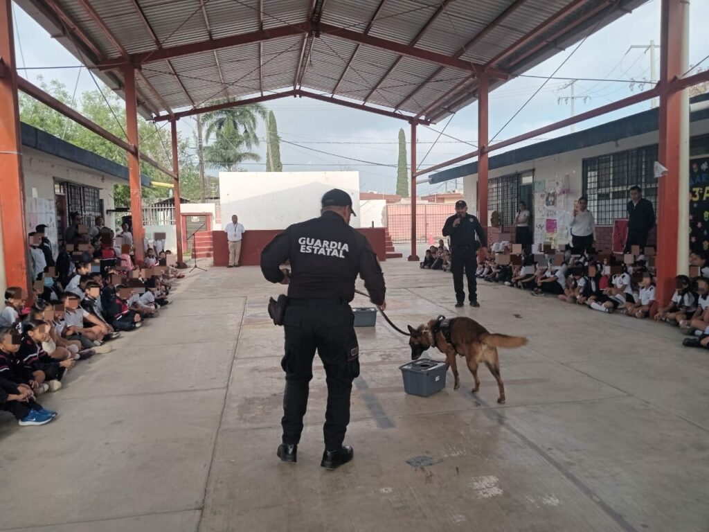 Como parte de las acciones de proximidad realizadas por el Agrupamiento Canino de la Guardia Estatal, se llevó a cabo una actividad de convivencia y demostración en la Escuela Primaria “Francisco Márquez”.