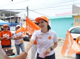 Olga Sosa y Carlos Canturosas, recorren calles de Nuevo Laredo llevando el mensaje de Claudia Sheinbaum