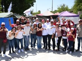 Reciben Olga Sosa y JR, respaldo de comerciantes en mercado rodante de Soto la Marina.