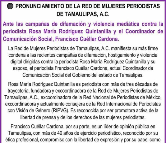 Red de Mujeres Periodistas condena ataques mediáticos contra Rosa María Rodríguez y Francisco Cuéllar